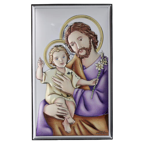 Immaginetta Valenti 10x5 cm bilaminato dipinta San Giuseppe con Gesù