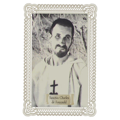 Santino San Charles de Foucauld abito religioso 12x7 cm decoro merlettato