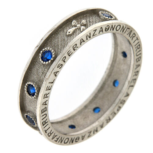 Anello Benedictus rodio rosario zirconi zaffiro argento 925
