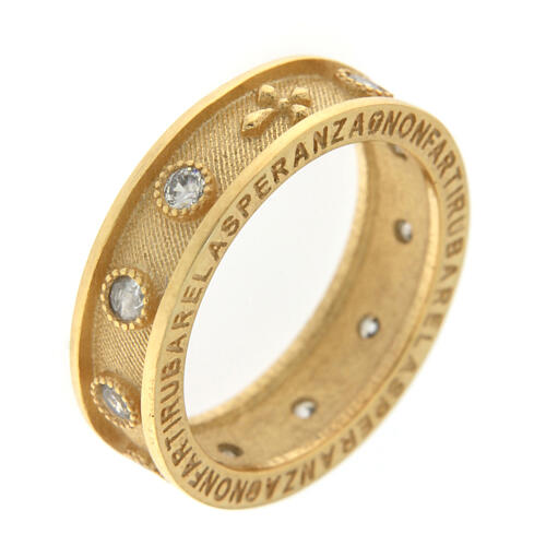Anello Benedictus rosario argento 925 oro zirconi bianchi.