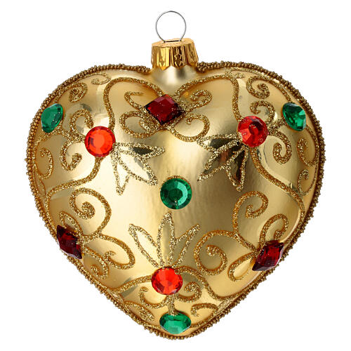 Cuore addobbo Natalizio in vetro soffiato oro e pietre sintetiche, 100 mm.