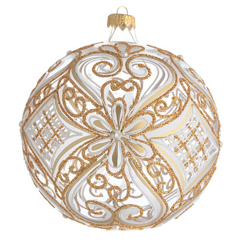 Palla addobbo albero Natale, oro e bianco, trasparente, diametro 150 mm.