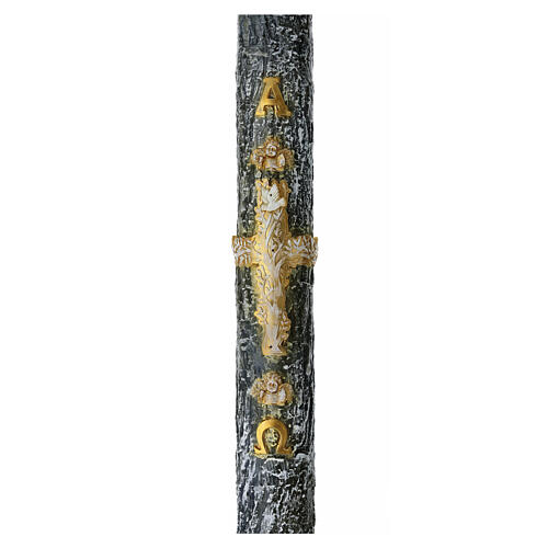 Cero pasquale in paraffina raffinata realizzato a colaggio con finitura effetto corteccia e applicazione Albero della Vita in rilievo.