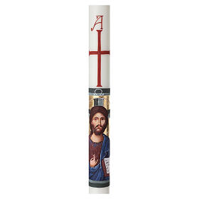 Cero Pasquale bianco Alfa e Omega croce agnello gocce 120x8 cm