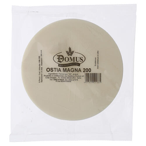 Ostie utilizzate durante celebrazione eucaristica e adorazione del Santissimo nelle funzioni liturgiche, confezione 5 pezzi diametro 200 mm spessore 1.5 mm.